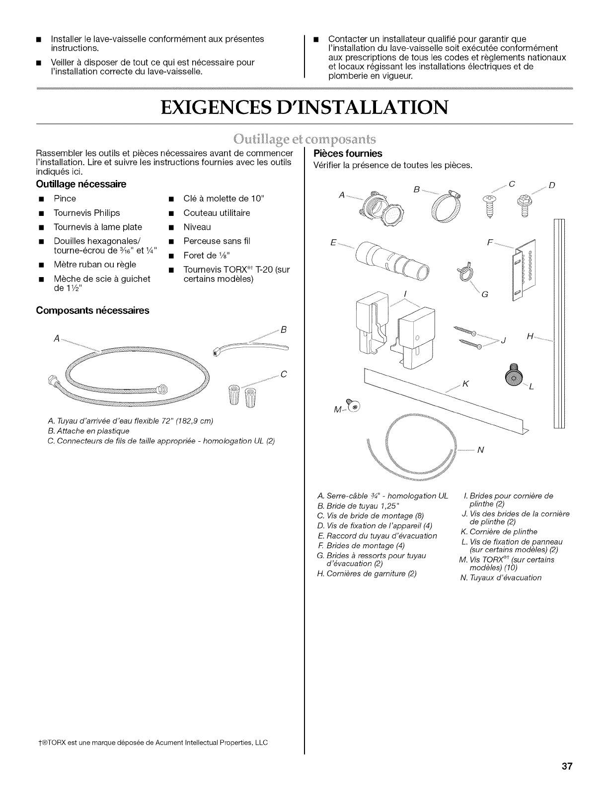 EXIGENCES D'INSTALLATION ............................................................... 37