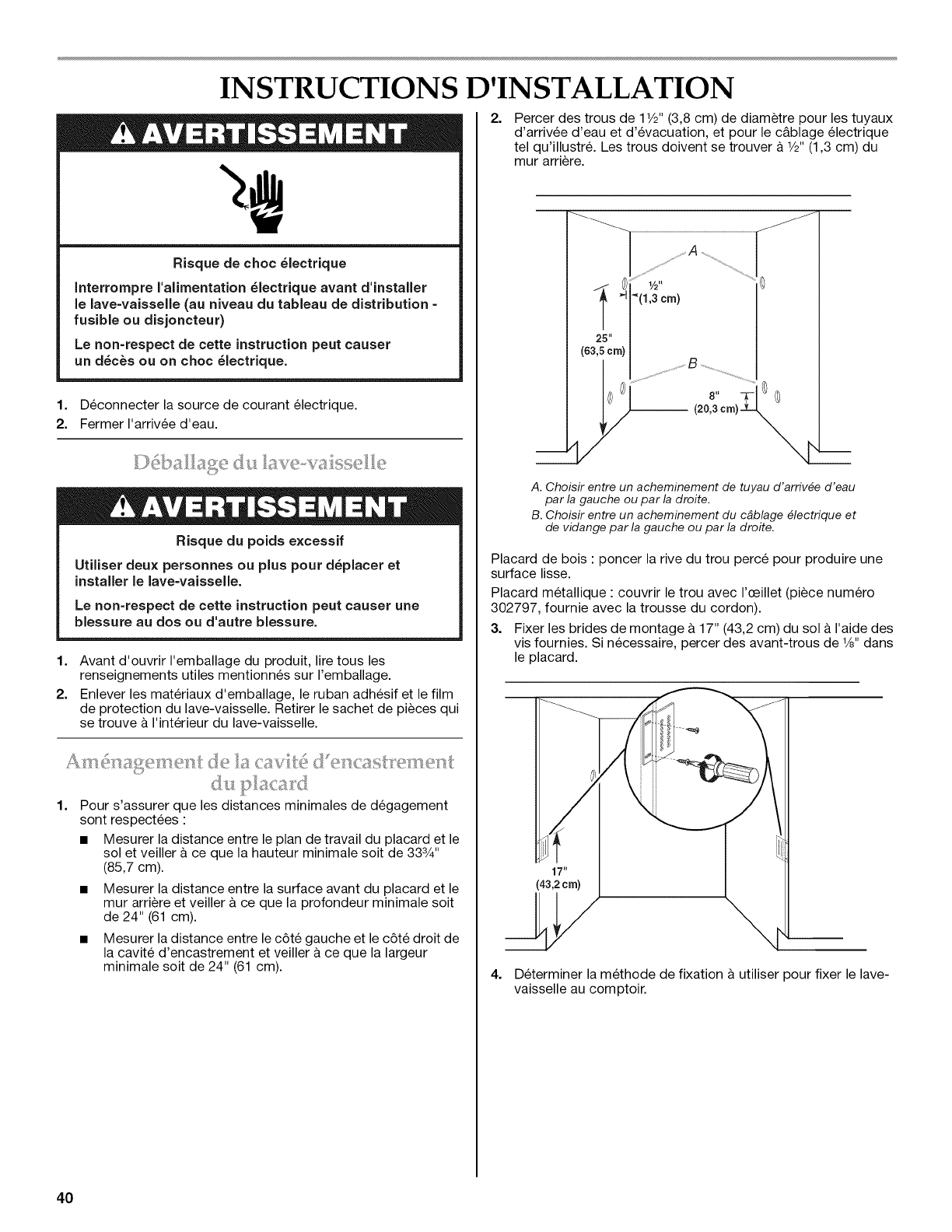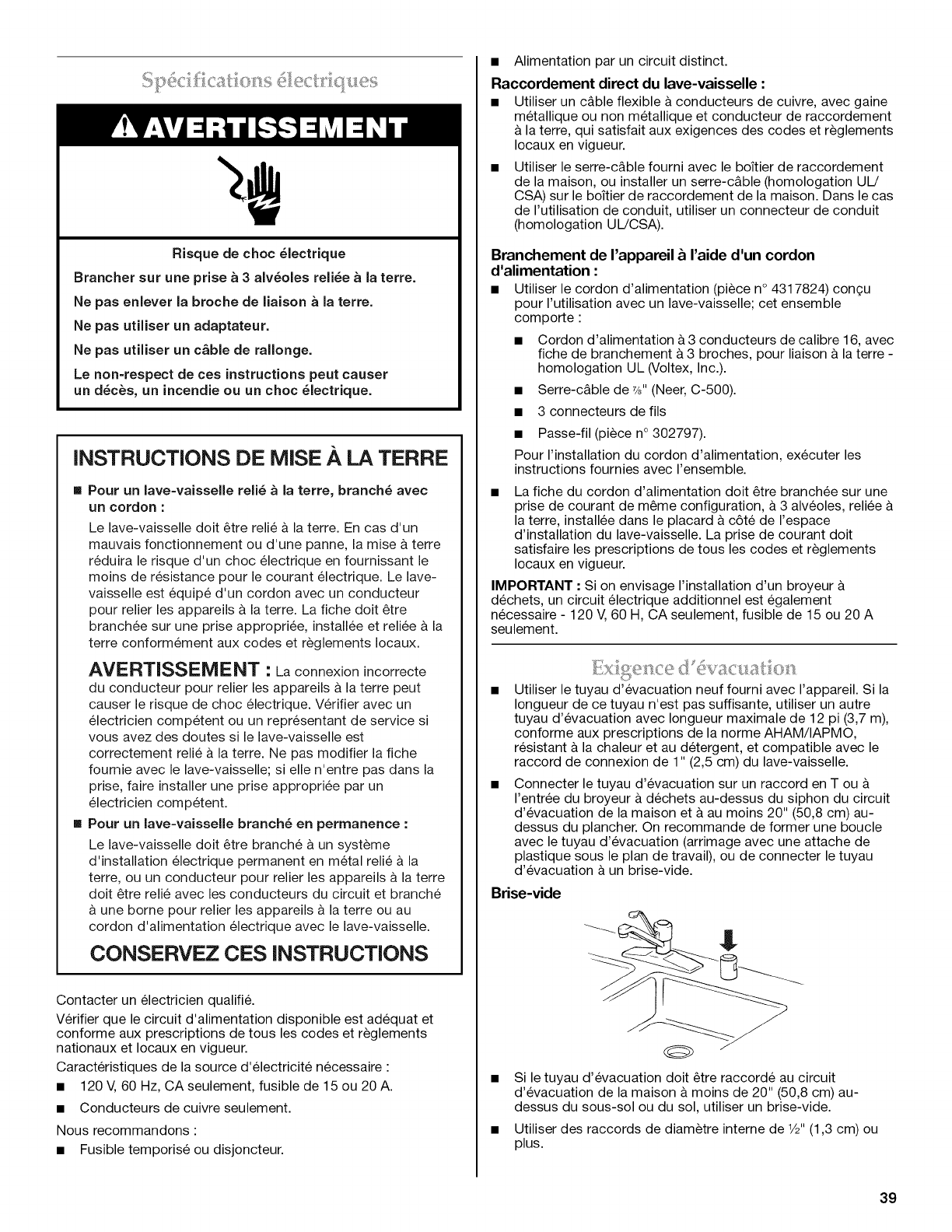 Propri6taire : Conserver les instructions d'installation pour r6f6rence ult6rieure.