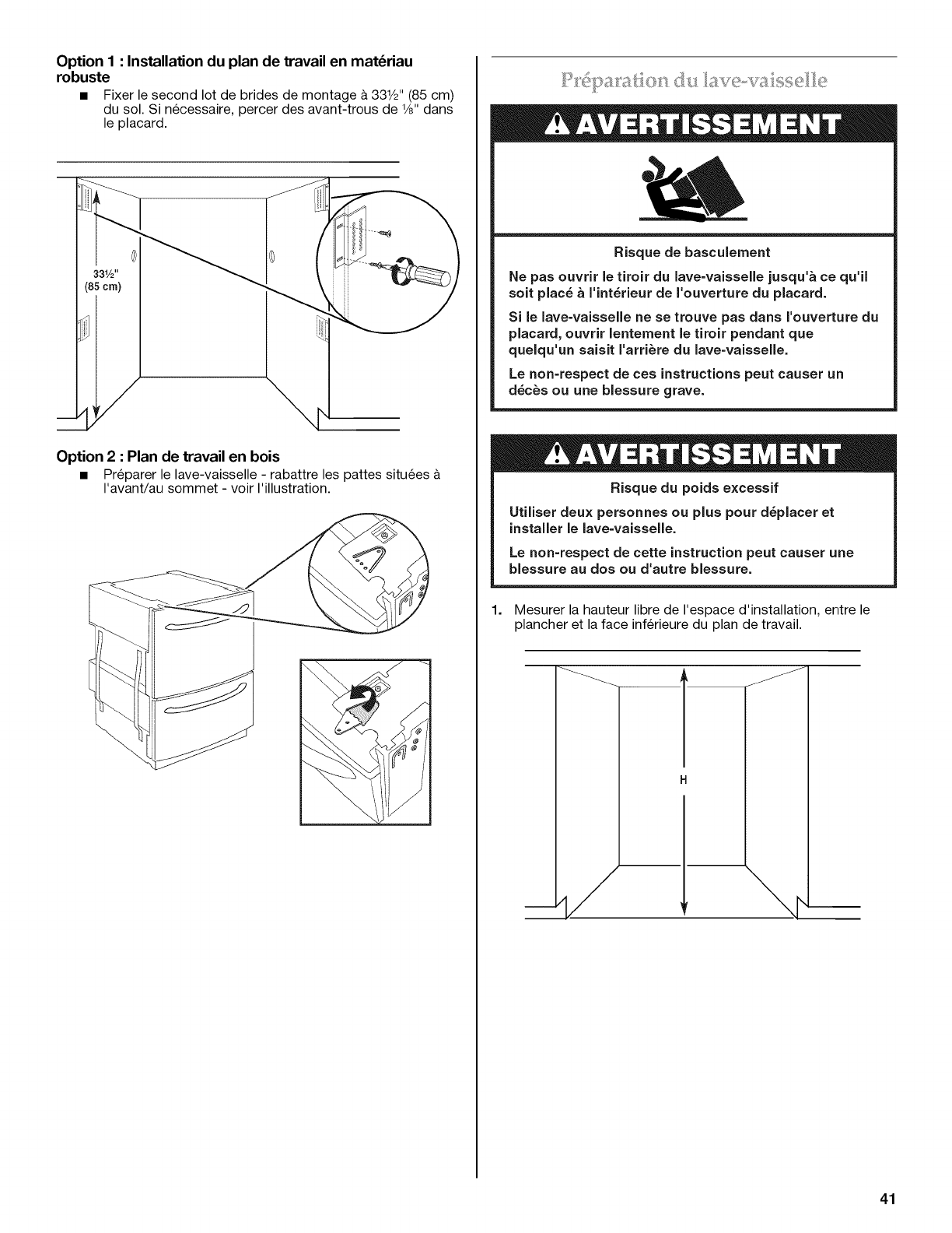 Respecter les dimensions indiquees pour la hauteur des