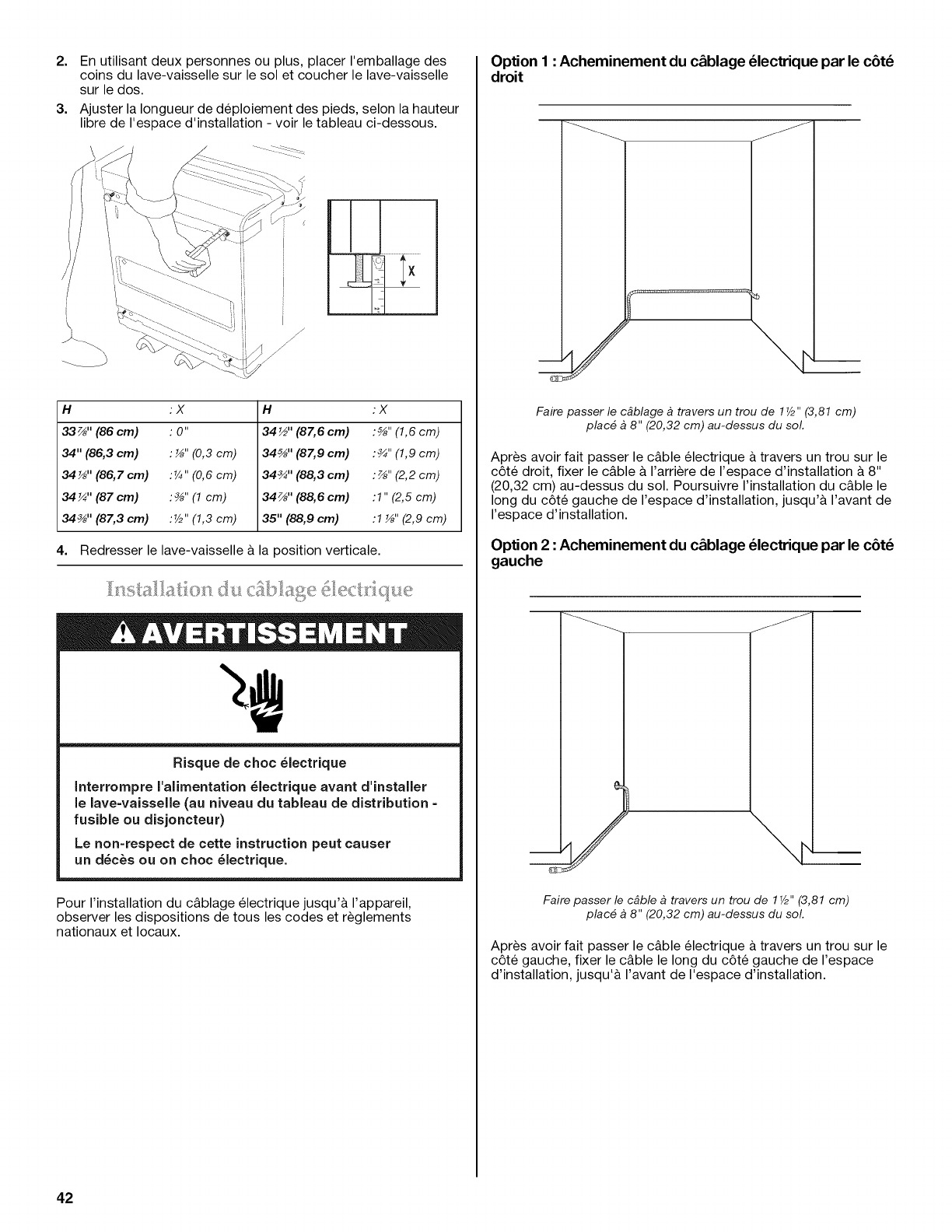 Installation du c&blage _lectrique .......................................................... 42