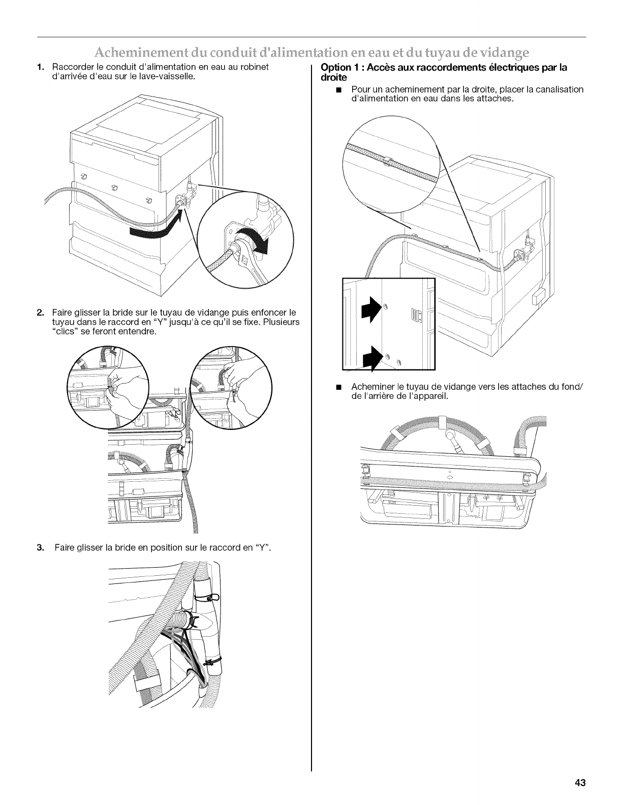 Acheminement du conduit d'alimentation en eau et du tuyau