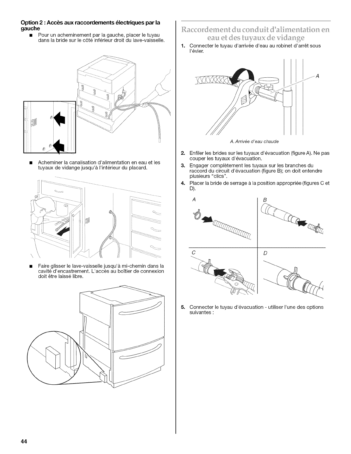 Raccordement du conduit d'alimentation en eau et des tuyaux de