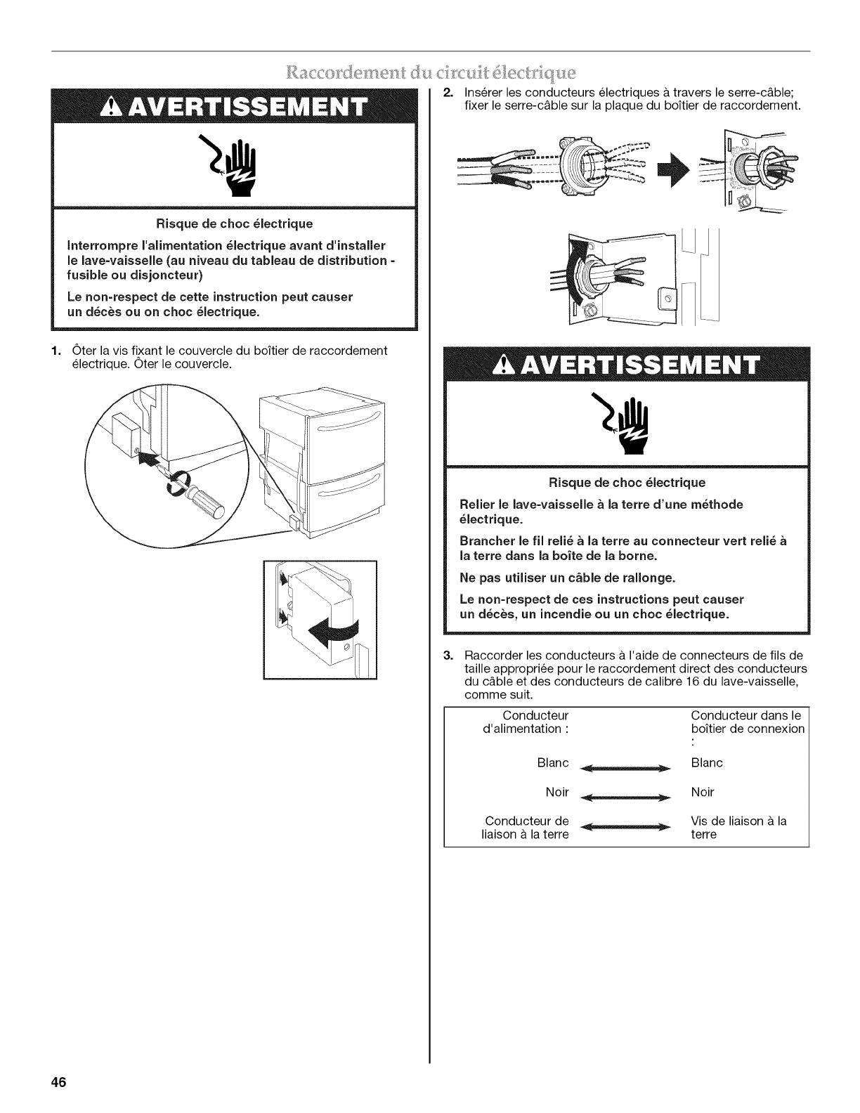 Raccordement du circuit electrique ...................................................... 46