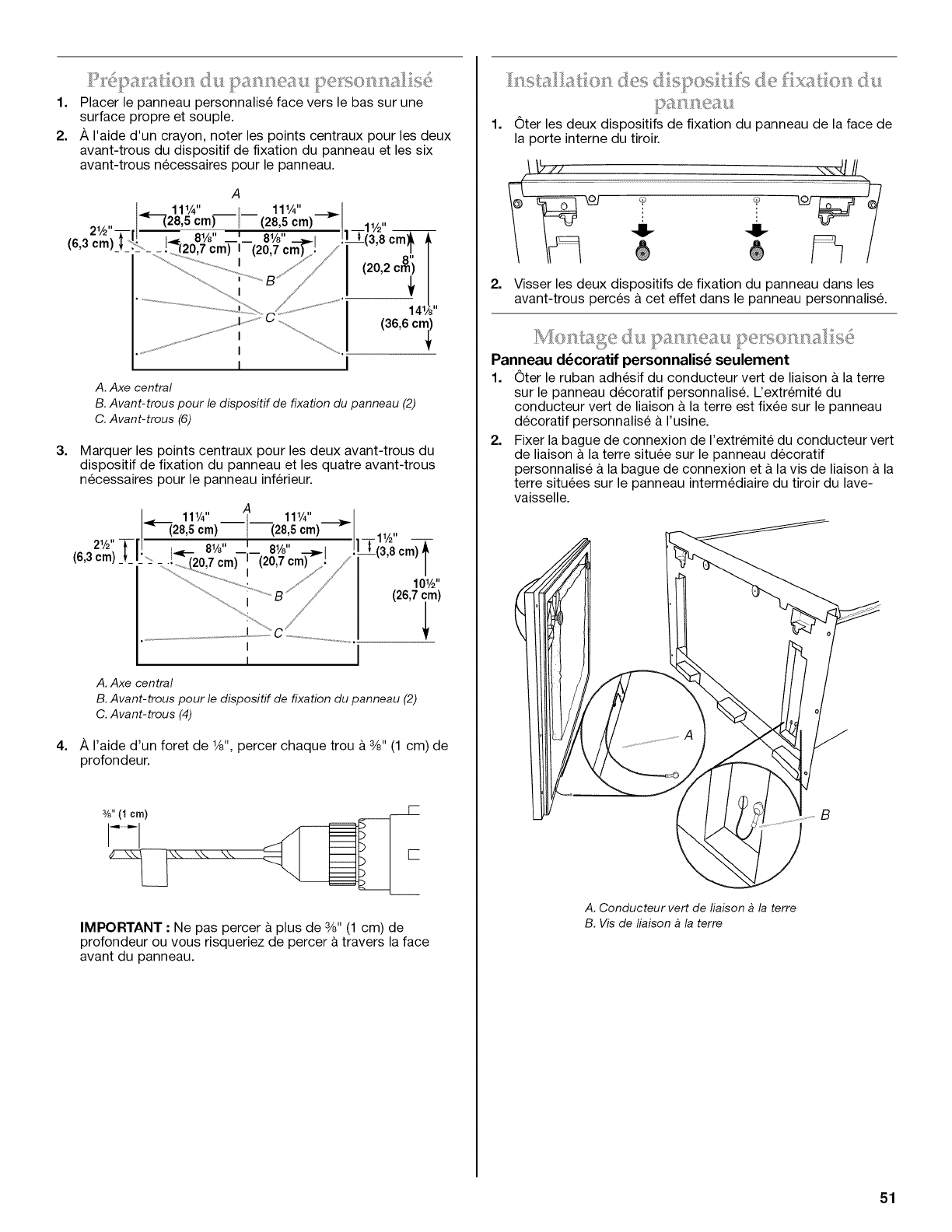 IMPORTANT : Ne pas percer & plus de 3/8"(1 cm) de