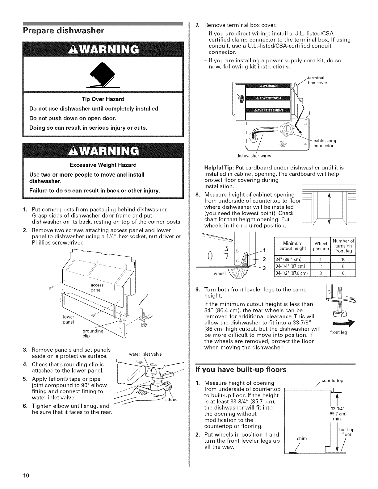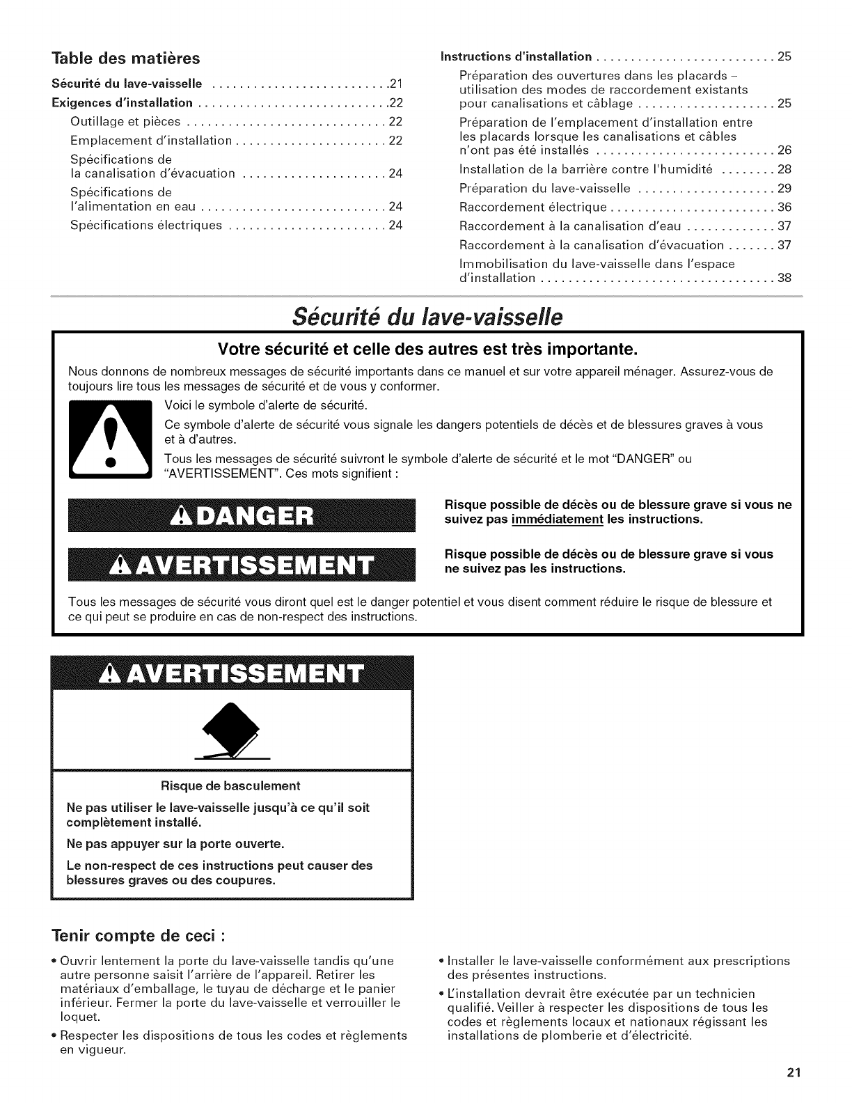 I'arri6re du lave-vaisselle, aussi loin qu'il peut aller; veiller