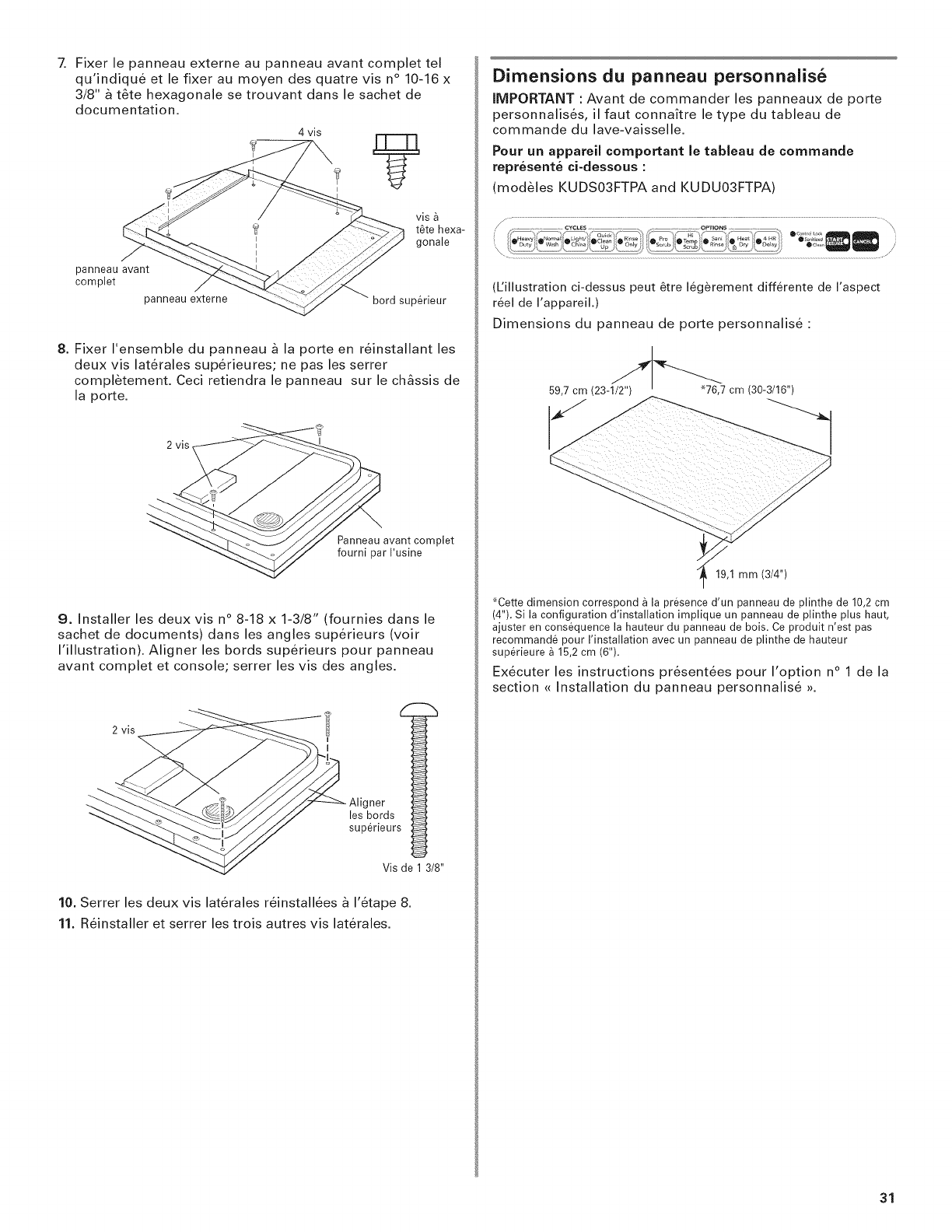 5. Verifier que le bord inferieur du panneau inferieur est au
