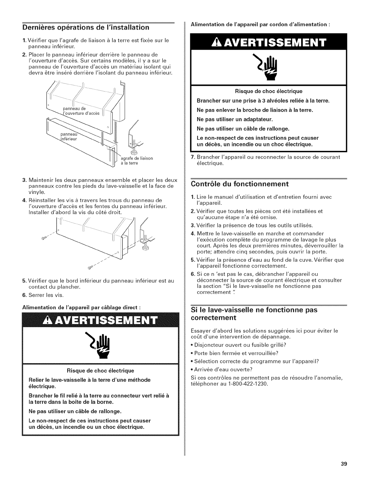 le lave-vaisselle puis etablir de nouveau I'aplomb de