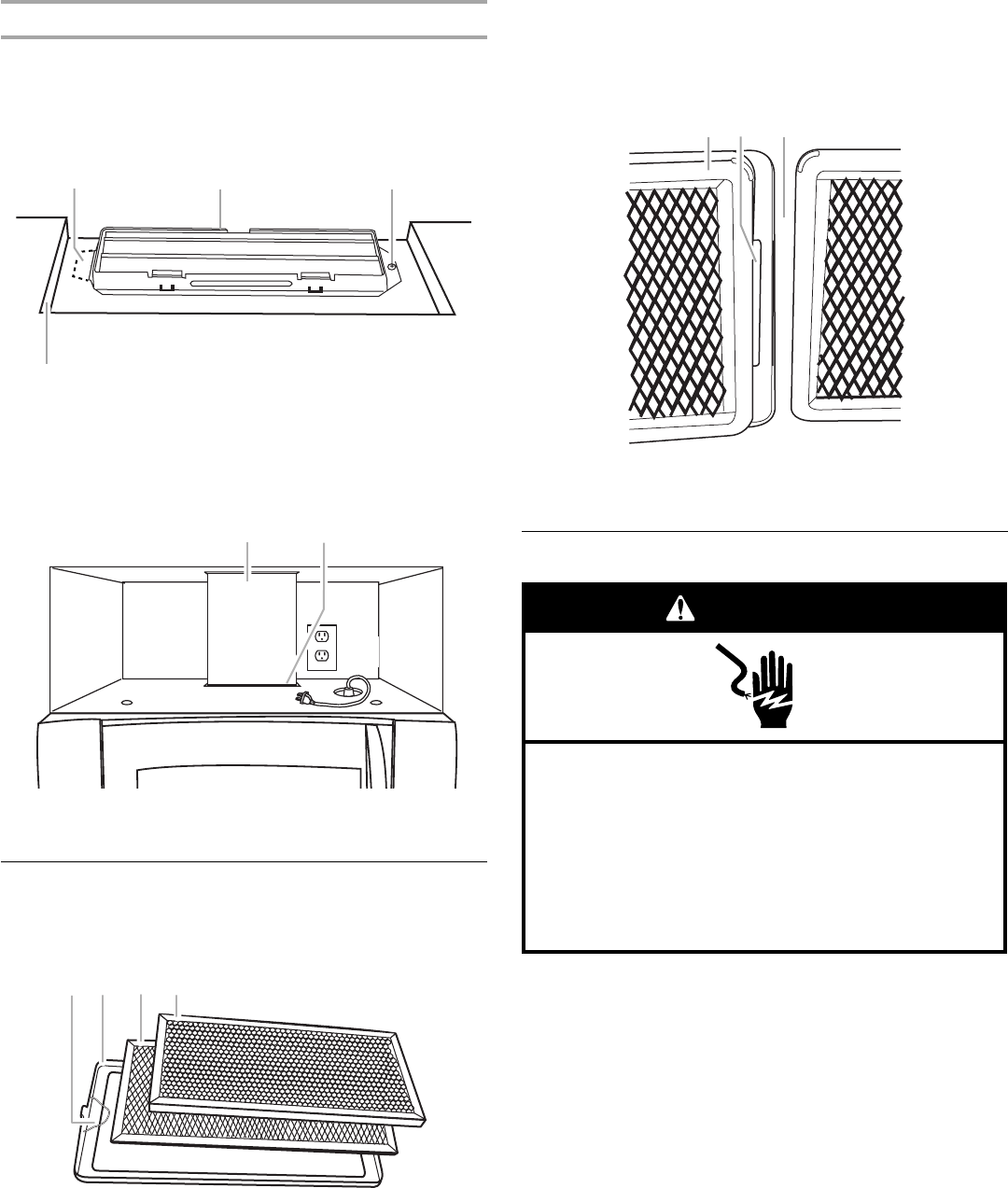 NOTE: Depending on model, aluminum grease filter and charcoal