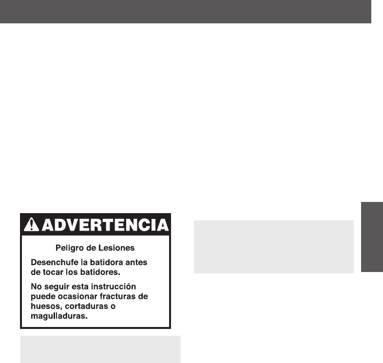 and other utensils away from beater during operation to reduce the risk of injury