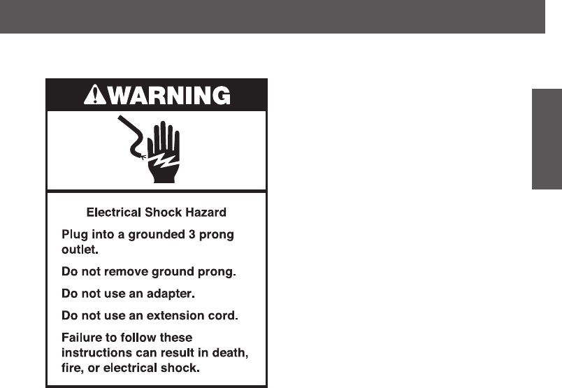 9. Do not let the cord hang over edge of table or counter.