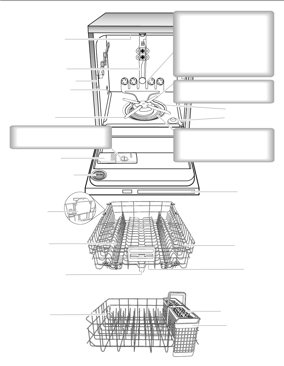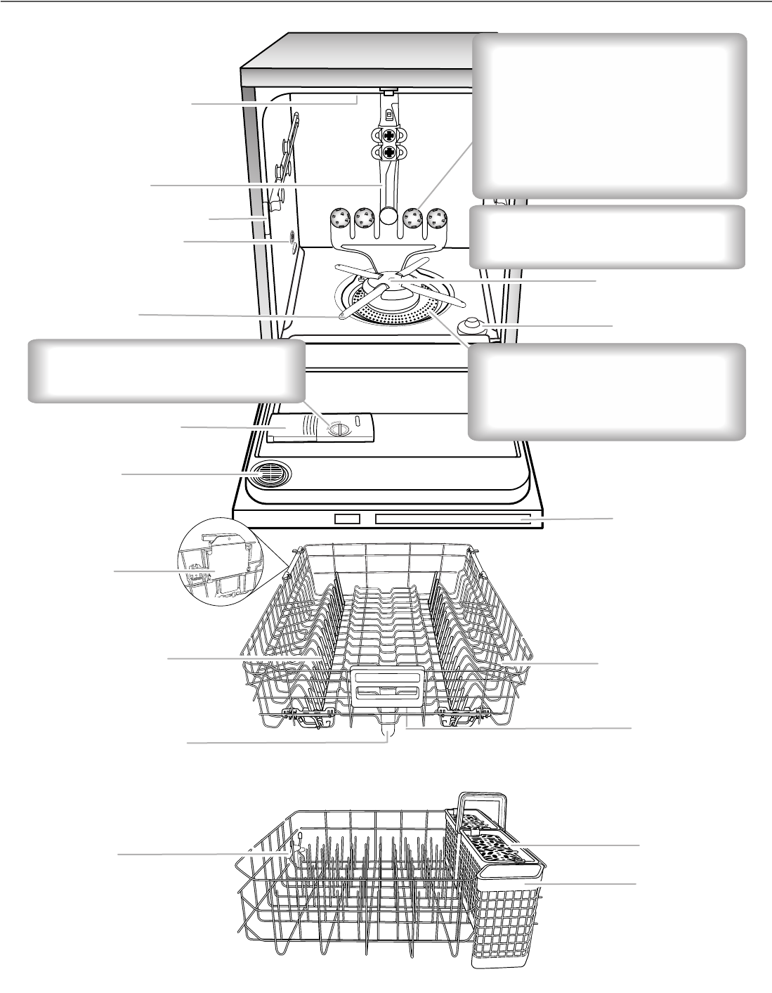 ■ Do not abuse, sit on, or stand on the door, lid, or dish racks