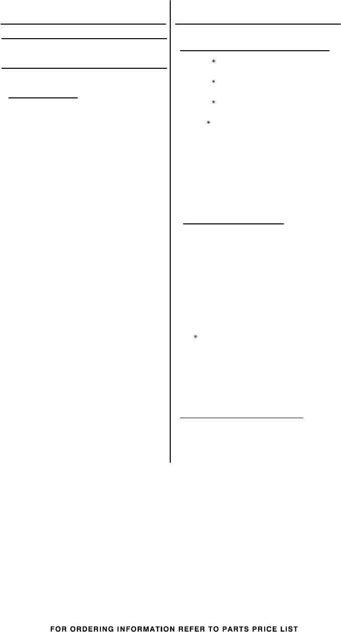 Parts Not Illustrated and