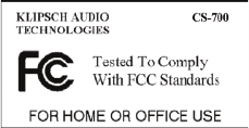 Klipsch Group CS700 DVD Part for Audio/Video System User Manual new