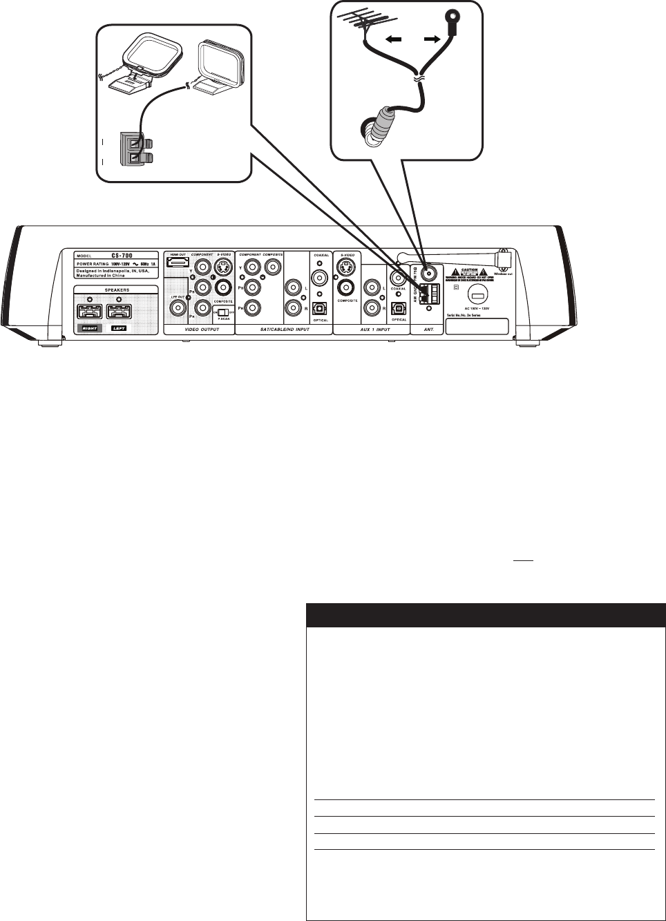 For best results, the antenna on the rear of the CS-700 A/V Center