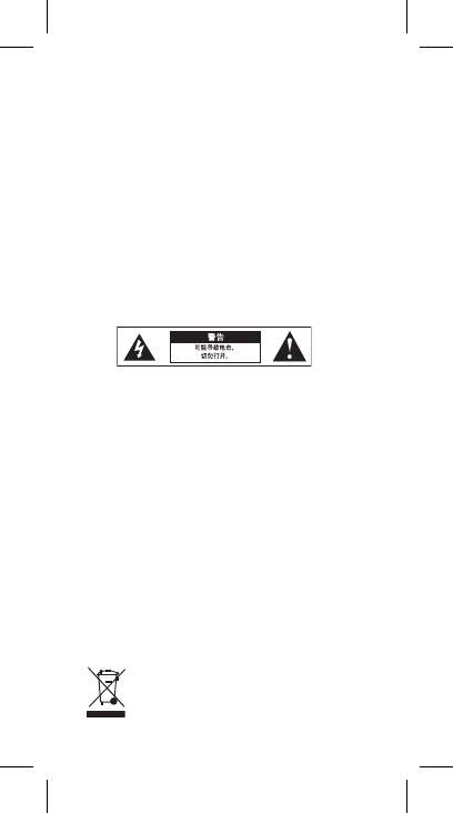 警告:为了减少火灾或触电的危险,请勿使本设备遭受雨淋或受潮。