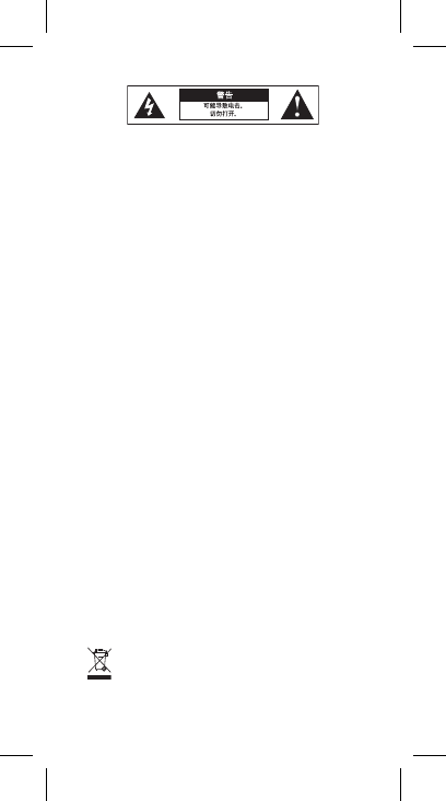 警告:为了降低火灾或电击的危险,禁止让本设备受到雨淋