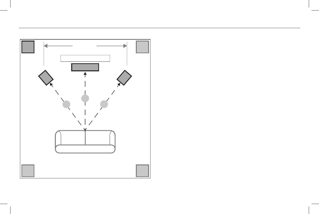 SPEAKER PLACEMENT IN LISTENING AREA • POSITIONNEMENT DES ENCEINTES DANS LA ZONE D’ÉCOUTE • UBICACIÓN DE ALTAVOCES EN EL ÁREA DE AUDICIÓN • LAUTSPRECHERPLATZIERUNG IM HÖRBEREICH •