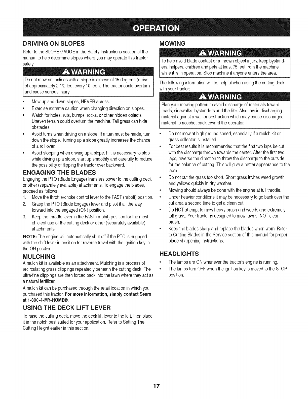 CraftsmanTractorHelp Line