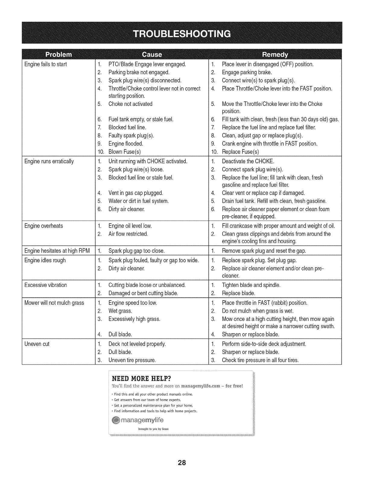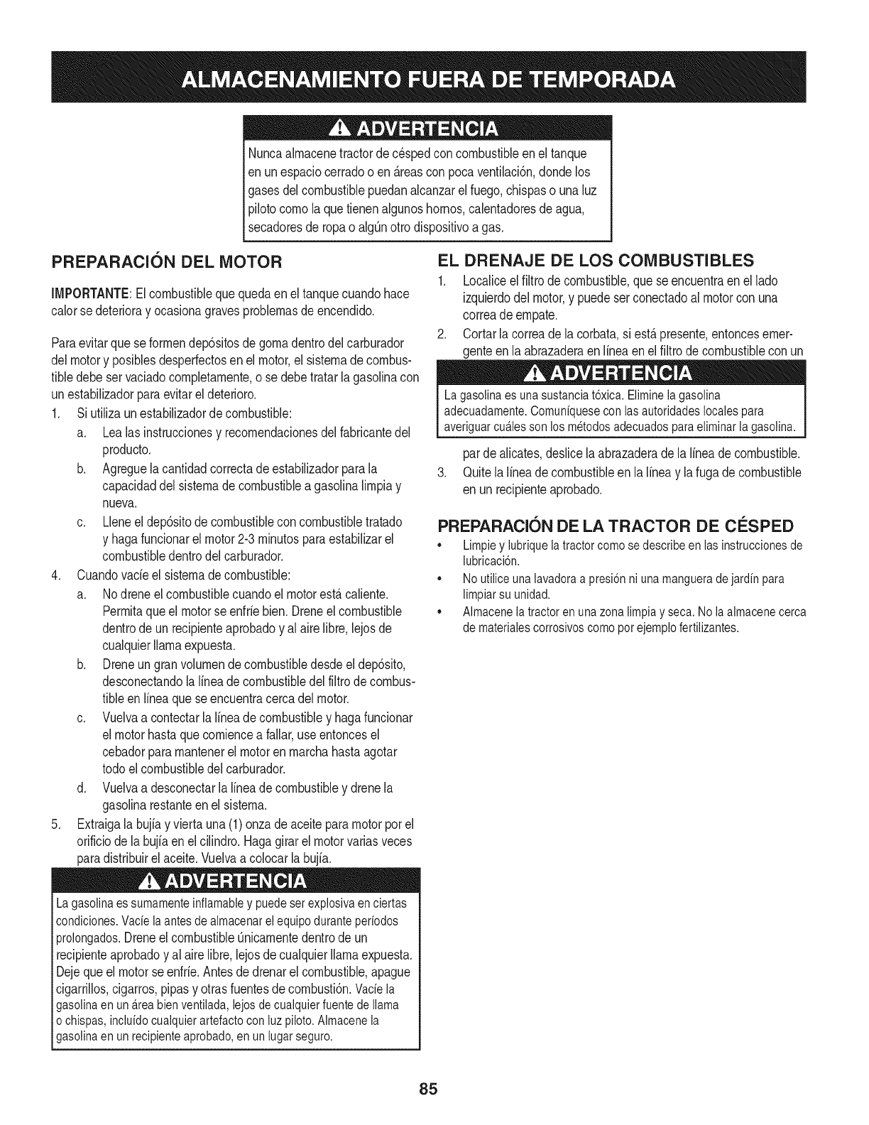 storage,failureto usethe propergradeandamountof engineoil, failureto keepthe deckclearof flammabledebris,or failureto