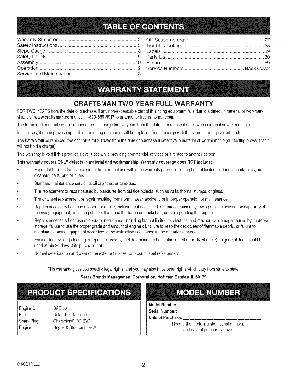 ® Registered Trademark /TMTrademark of KCD IP, LLC in the United States, or Sears Brands, LLC in other countries