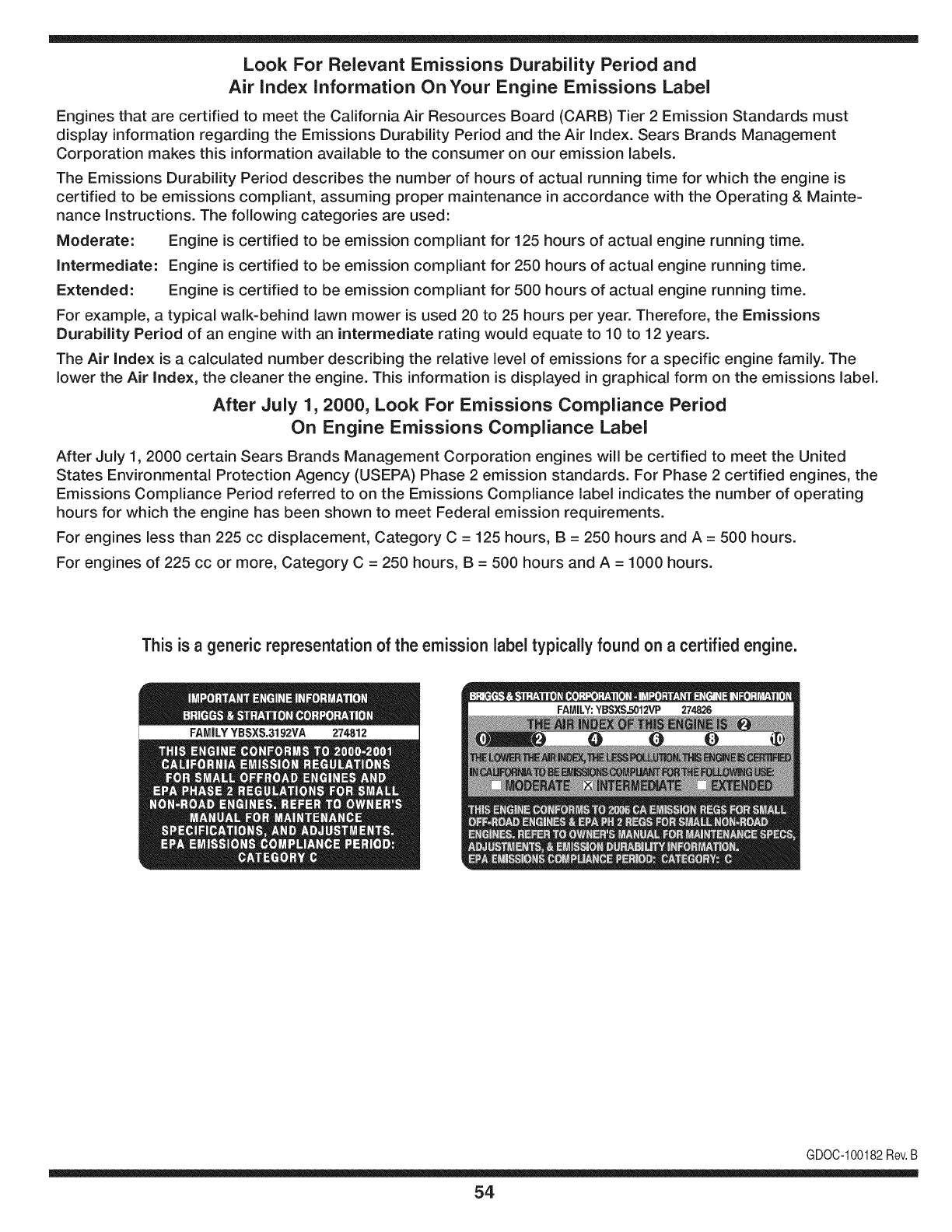 This product has a low emission engine which operates differently