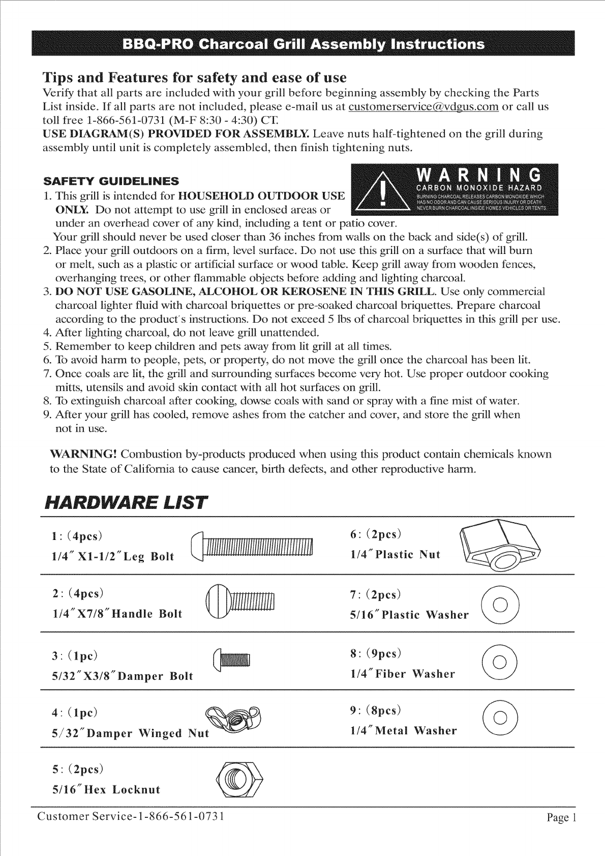 Customer Service- 1-866-561-0731 Page 1