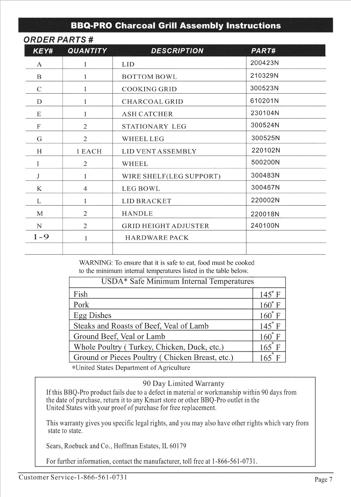 Customer Service- 1-866-561-0731 Page 7
