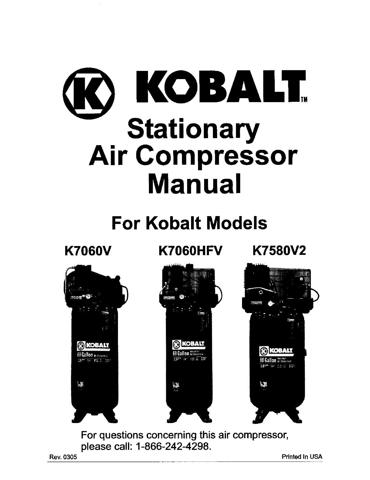 StationaryAir Compressor sendce underthis wananty is availableon these KobaltProductmedalsby contac_agus at 1-866-242-4298 for a