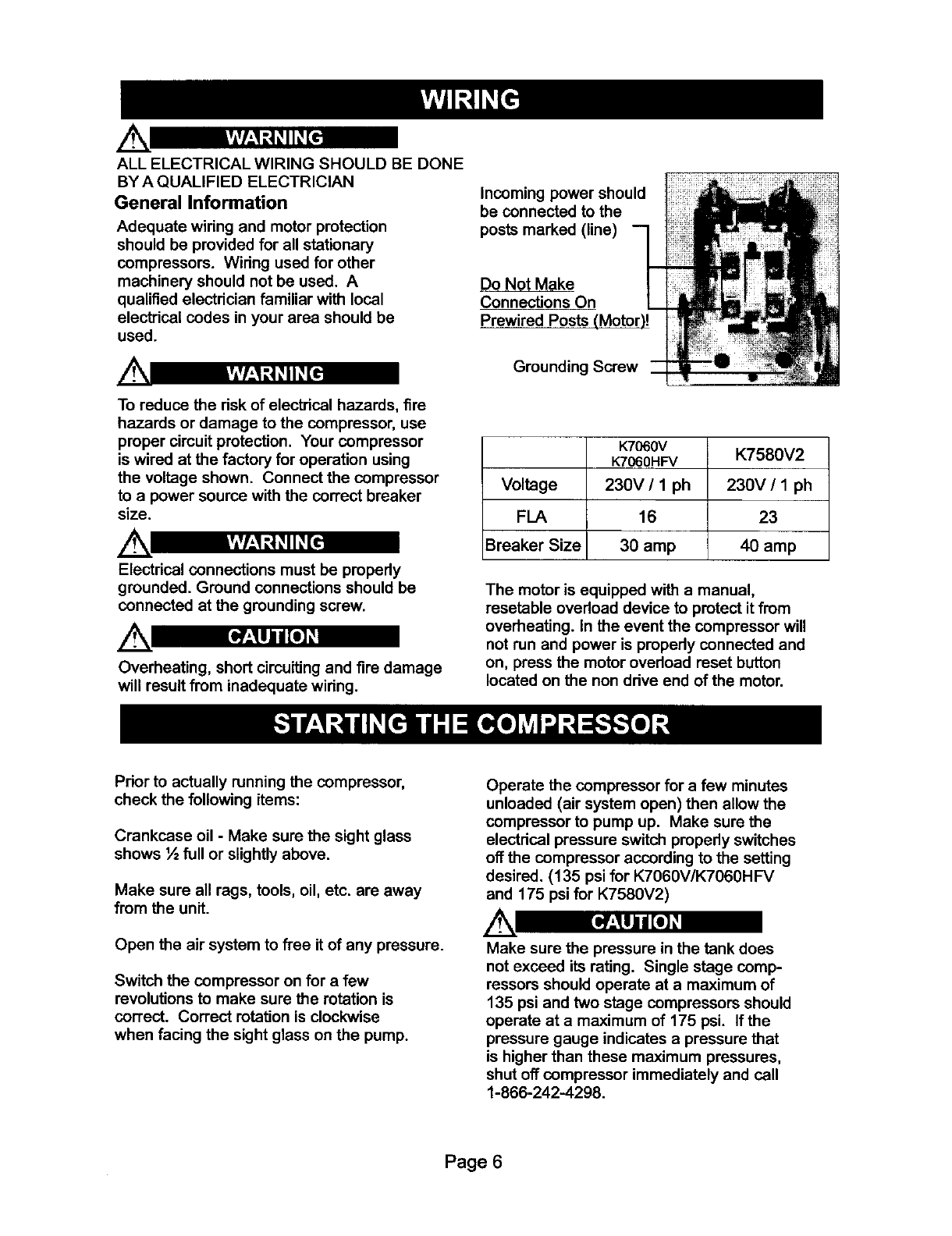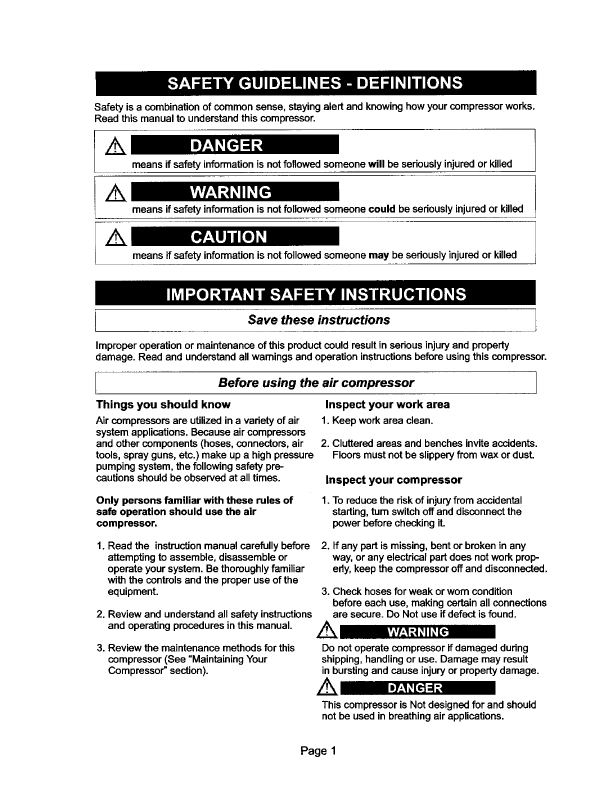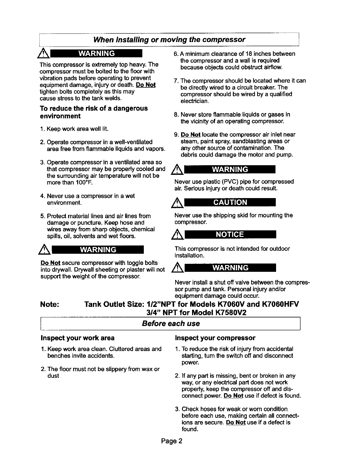 damage. Read and understand all warnings and operation instructions before using this compressor.