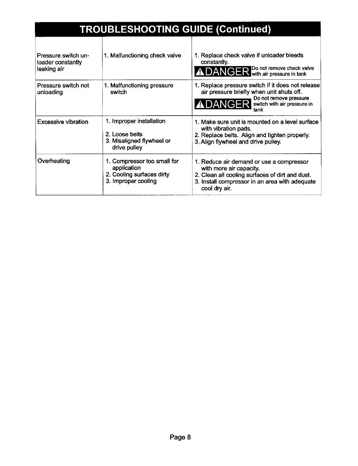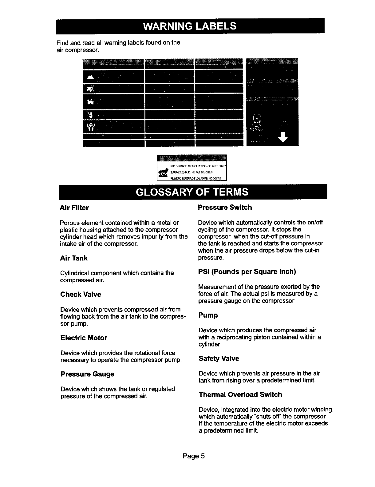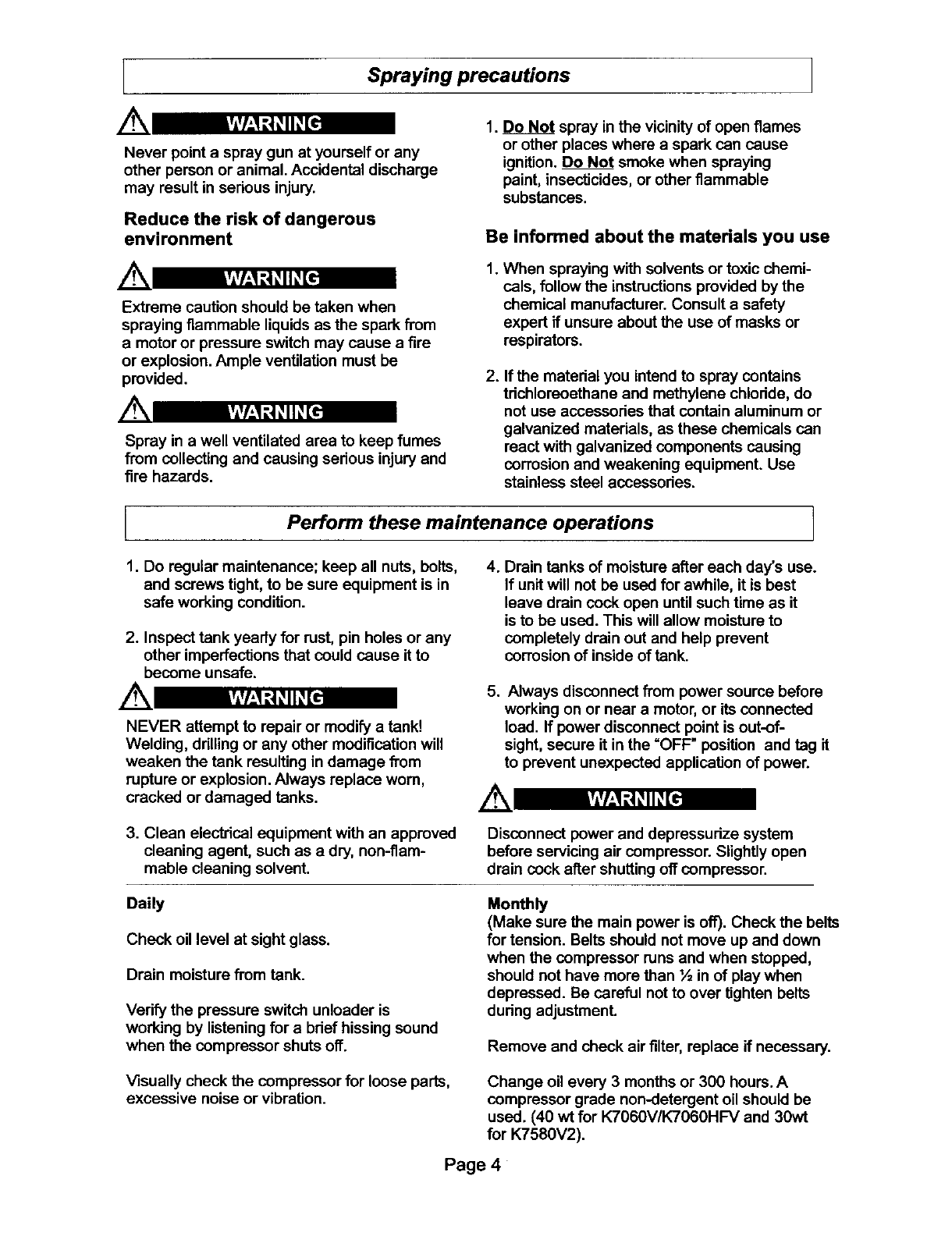 damage. Read and understand all warnings and operation instructions before using this compressor.