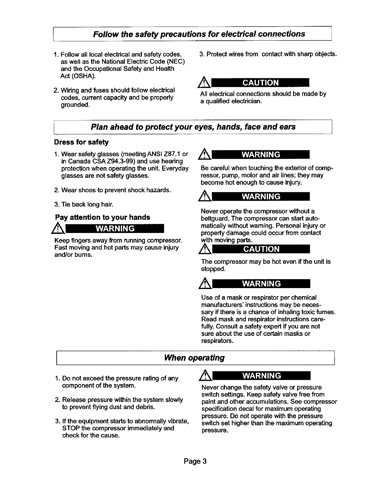 Safety is acombination of common sense, staying alert and knowing how your compressor works.