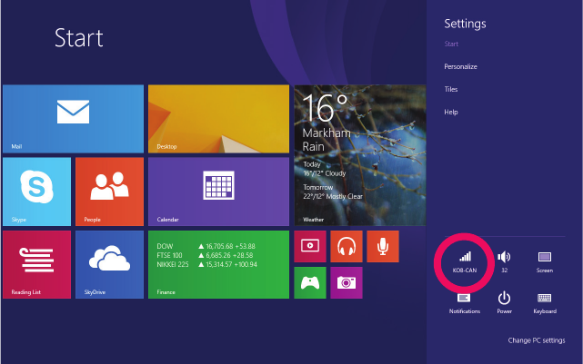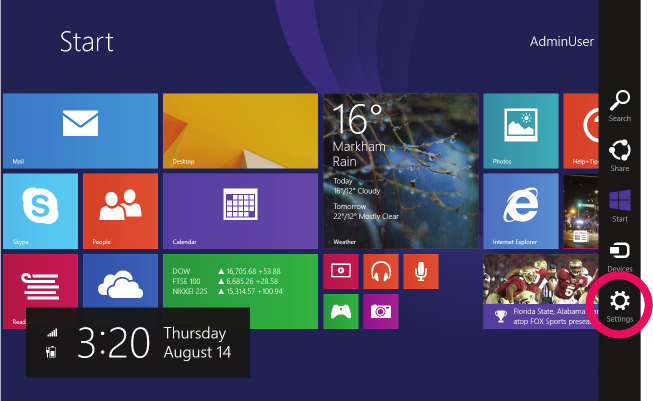 1. Tap the Settings in Charms Bar.