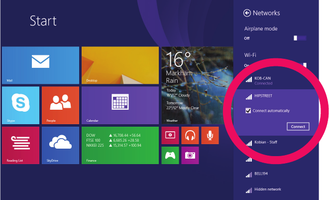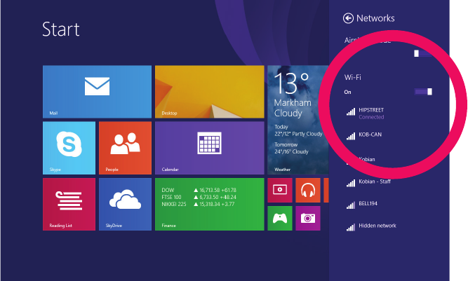 Your Windows Tablet provides a simple interface for connecting to wireless internet. You