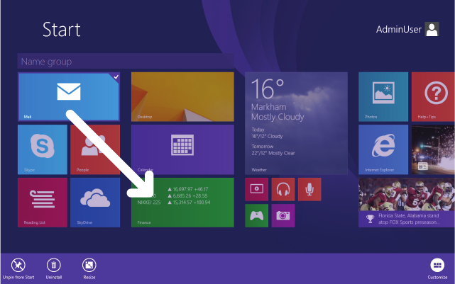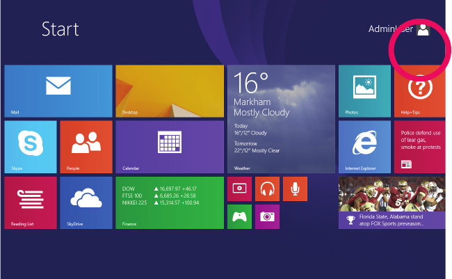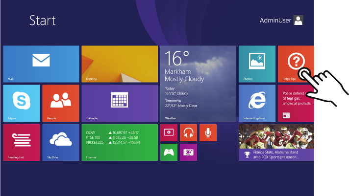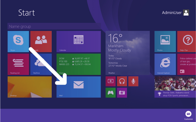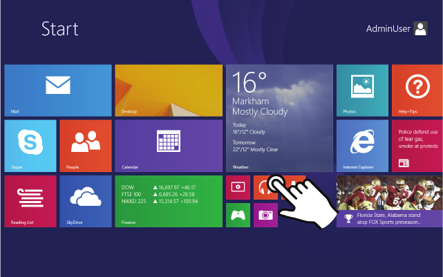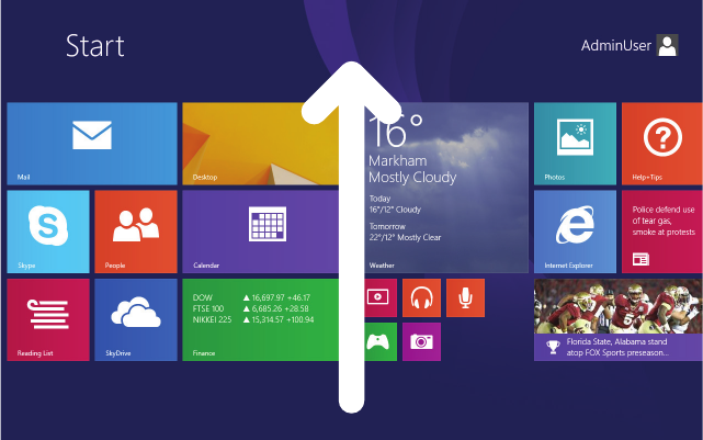 This interface is optimized for touch screens. You can get to the Start screen by pressing