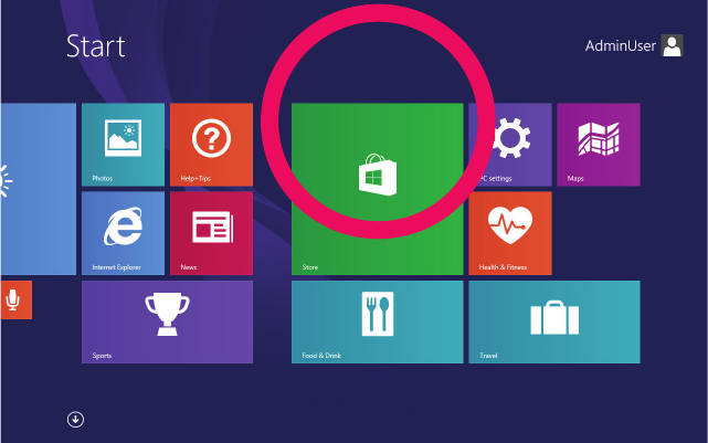Tap the Store tile on the Start screen, then browse and install your