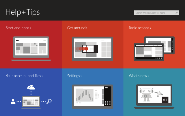 For more instructions on how to use Windows 8.1, open the Help+Tips
