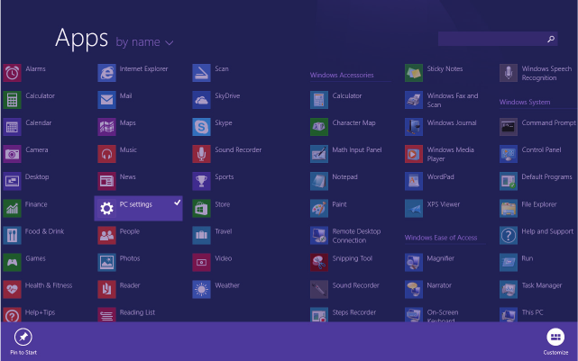 view, then tap Pin to Start at bottom-left corner of the screen.