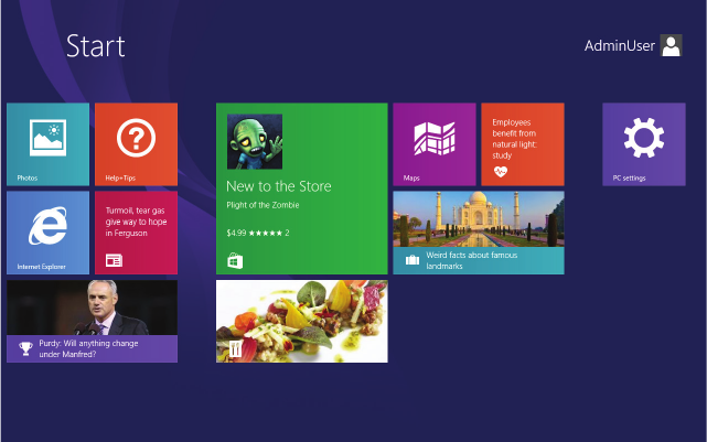 The Start screen is the first thing you see when you login to Windows. It is the main