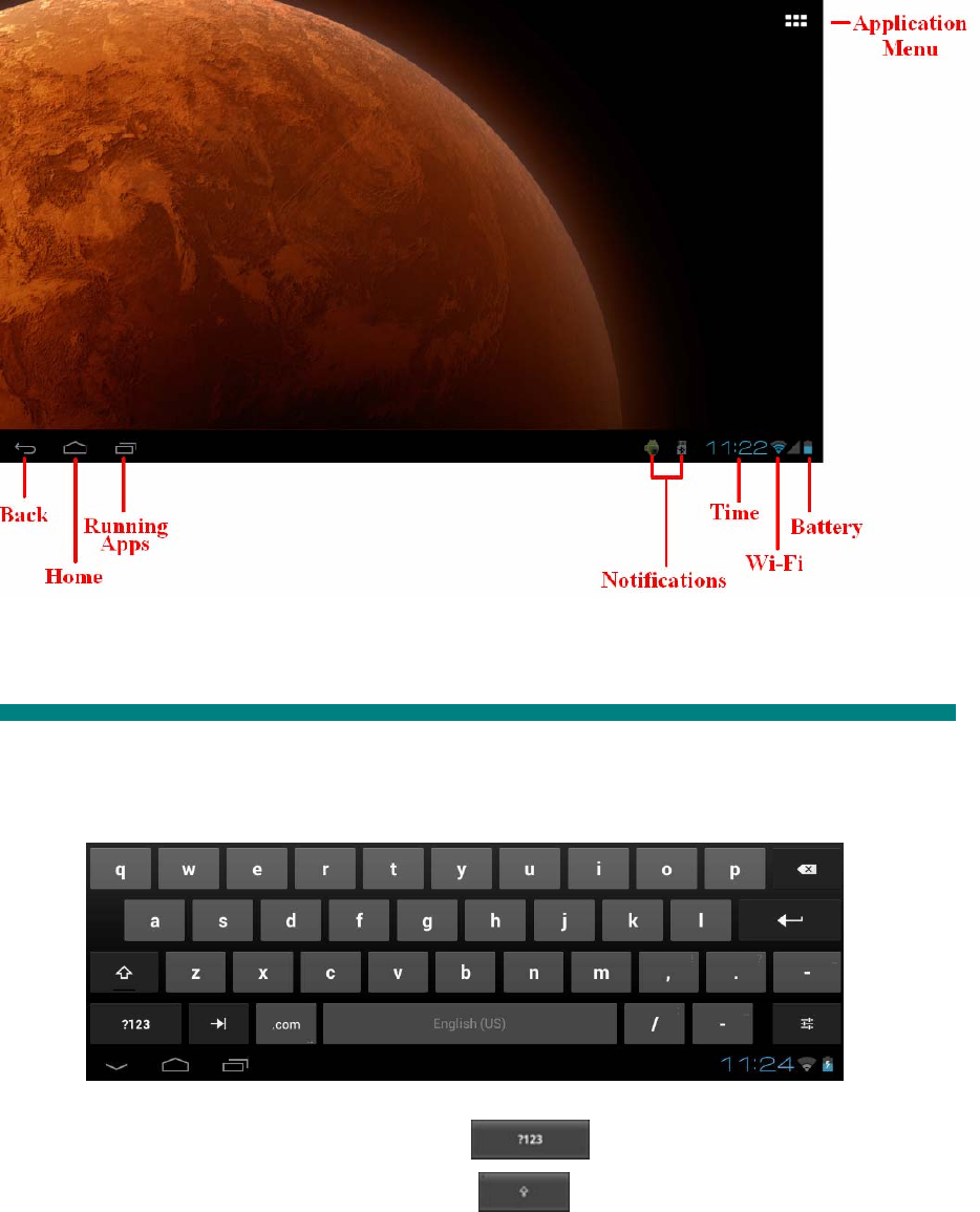 When using the tablet, you can use the on-screen keyboard to enter text, numbers, symbols directly.