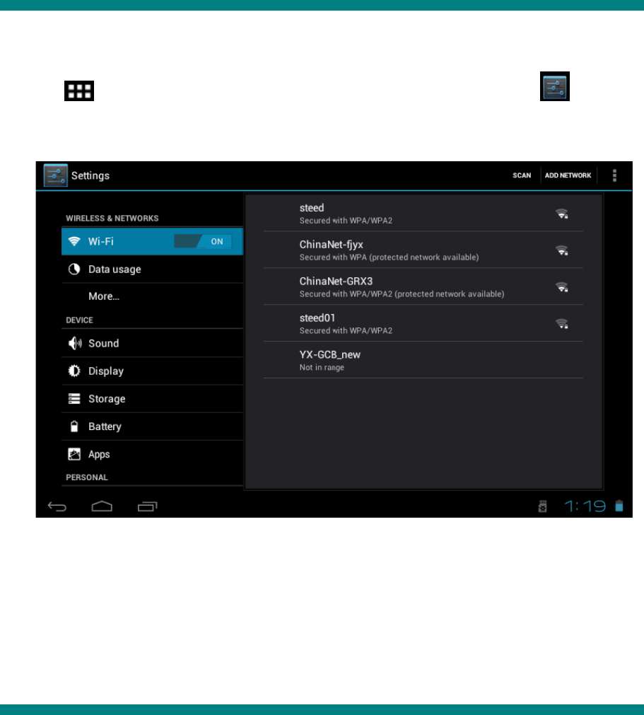 First tap in the Home Screen to enter the Application Menu. Then tap (Settings) to