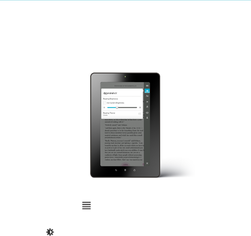 Adjusting screen brightness in the Kobo app ................................................ 28!