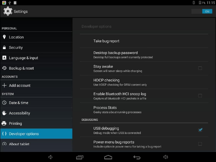 18. Developer options
