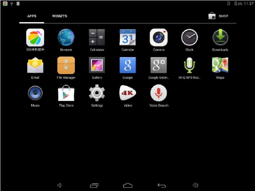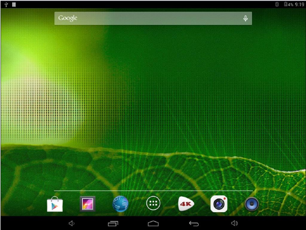 After turning on the device, desktop displays with shortcut icons and arrow panel at the right side