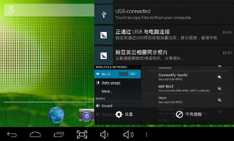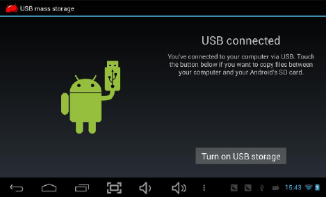 Press “USB connected”, select “Turn on USB storage”.