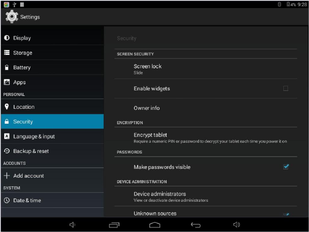 Unknown sources - If you want to allow installation of non-Market Applications,