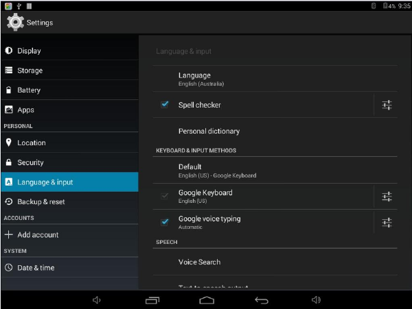 On Language & input settings, if you need other languages besides English on keyboard, press the relevant