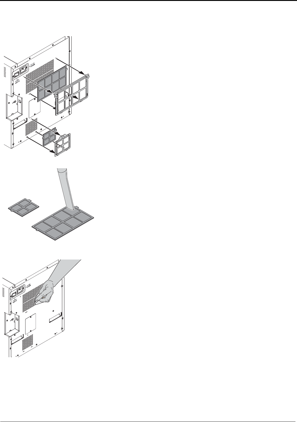 • Do not block the filter openings on the printer cabinet.
