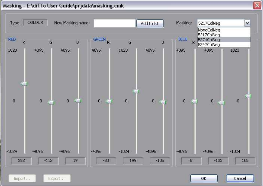 The Masking control provides the ability to individually adjust the ‘masking’ of the Red Green and Blue signals by