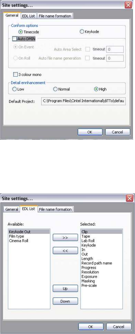 Settings: Site: EDL 19