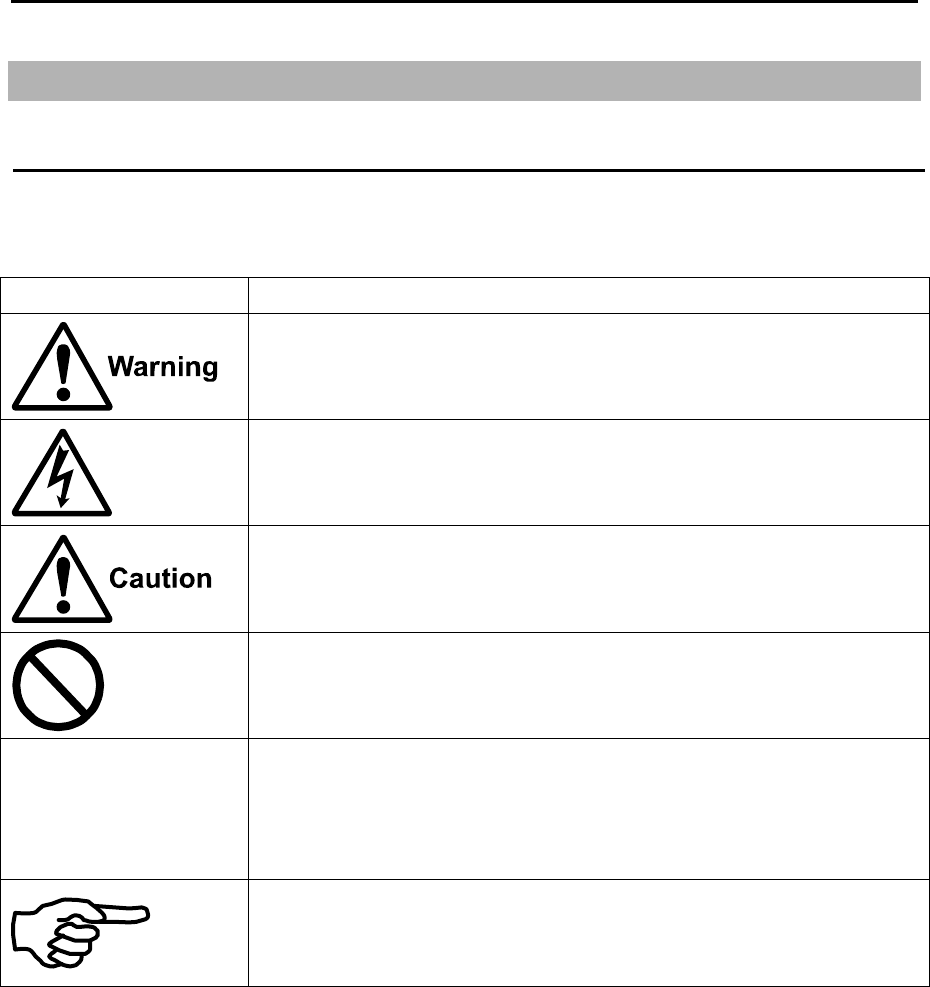 This manual uses the following symbols. Understand the meaning of each symbol and implement the